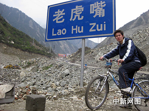兩周前,西南大學(xué)研究生李應(yīng)財(cái)獨(dú)自一人騎自行車(chē)前往四川地震災(zāi)區(qū),一路祭奠那些在“天災(zāi)”中逝去的人們。