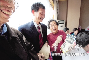 64級1班學生、在渝中區(qū)統(tǒng)戰(zhàn)部工作的王有惠為老師獻上一副題字,5班一位男學生奉上一幅書畫。“這不是當年的窮孩子馬慶嗎?”王忠篤說,馬慶父親早亡,母親獨自供養(yǎng)馬慶三兄弟,生活很困難。學校想辦法給他提供了每月8元的助學金,老師們也幫他湊生活費!靶iL,我剛從渝中區(qū)商委主任和總工會主席的位置上退下來,以后會常來看您!61歲的馬慶含淚道。