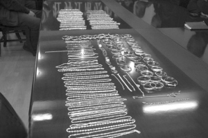 4月19日下午15時許,牡丹江東安公安分局刑警大隊二中隊干警在工作中得知,一名四十左右歲男子身上有大量金首飾,在一個體加工首飾店內(nèi)急于出售。警方立即趕往該首飾加工店,將可疑男子帶回訊問,在審查中從其包內(nèi)發(fā)現(xiàn)大量金項鏈,戒指、耳環(huán)、手鐲、腳鏈等白金黃金飾品,經(jīng)初步估算價值近70萬元左右。