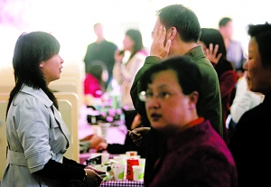 “招聘”人員可坐在貼有自己資料的展臺內(nèi),一旦有其他人看資料后覺得條件符合,雙方可如同招聘會上的招聘方與應聘者一樣,坐下來交流。