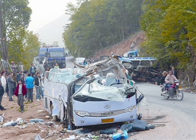 昨日下午,我省五峰縣境內(nèi)發(fā)生一起特大交通事故,一輛載有武漢“統(tǒng)一”企業(yè)員工及家屬的武漢客車發(fā)生側(cè)翻,車上6人死亡、28人受傷。