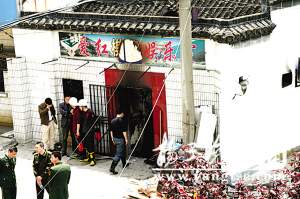 “愛紅棋牌室”西側緊挨古運河,在一條名為“缺口河東小街”的巷子的最里面。記者在現場看到,“愛紅棋牌室”東、南、北3面道路周圍都被警方用2至3道警戒線封鎖,大量警力在現場維持秩序。由于圍觀群眾太多,躍進橋上的警戒線出現了多次被人潮擠斷的情況,民警及時進行修復和更換。