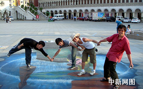 據(jù)悉,“城市立體畫”在國際上已經(jīng)流行多年了,但在中國國內(nèi)并不多見。4月25日,南京玄武湖公園展出了30多幅城市立體畫,一名男士將腳伸進(jìn)了“鱷魚”口中,逼真的效果甚至引得路人為這名男士捏了把汗。隨后,城市立體畫迅速風(fēng)靡網(wǎng)絡(luò)。韓承告訴記者,在杭州,畫立體畫的不多,但感興趣的不少,“希望明年能在動(dòng)漫節(jié)上組織一次立體畫的比賽,爭取讓這個(gè)新創(chuàng)意能真正流行起來!