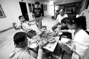 3個孩子每個周末回來一次,每次回來,家里都要改善伙食。平時,夫妻倆在家,每餐只吃一個青菜一個湯,一個星期的伙食費(fèi)才二十多元。孩子回來一次,至少要花上100多元。肚子里的寶寶營養(yǎng)也不能缺,但吃的沒有哥哥姐姐好,最多喝點(diǎn)牛奶解解饞。