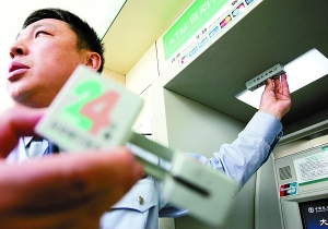 昨天上午,朝陽公安分局內(nèi)保處王警官介紹,4月28日20時(shí)30分,市民張女士在位于亞運(yùn)村附近的一家中國農(nóng)業(yè)銀行支行某分理處自助銀行辦理取款業(yè)務(wù),發(fā)現(xiàn)三臺(tái)提款機(jī)僅有一臺(tái)可用,另外兩臺(tái)的屏幕都被A4紙貼上,寫著“本機(jī)正在升級(jí)中,請(qǐng)見諒”,當(dāng)張女士打算在唯一能用的機(jī)器上取款時(shí)看到,這臺(tái)機(jī)器上方多了一個(gè)方形盒子,下方的插卡口處套了一個(gè)標(biāo)有“24小時(shí)自助銀行服務(wù)”的卡槽,張女士覺得可疑,立即向銀行和公安機(jī)關(guān)報(bào)警。