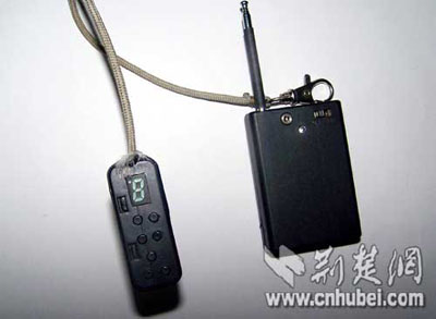 4人交待,“遙控器”名“鎖車干擾器”(如右圖),是上月從廣東買回的,準備在武漢“大干一場”。當日,他們用“鎖車干擾器”已打開2輛轎車車門,車內(nèi)沒有財物;開第3輛車車門時被抓。