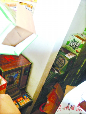 在一家叫“祥瑞豐”的百貨店里,小店內一名女工作人員,還領著記者來到店內偏僻處。她掀開層層廢紙板后,露出一臺藏匿其中的老虎機,“他們讓我偷偷藏在這里的”。