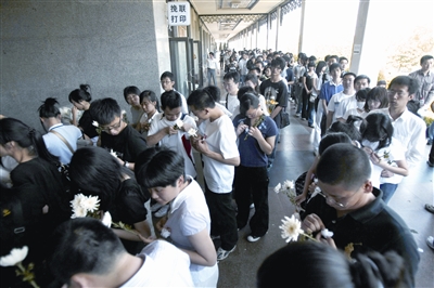 10點10分,譚卓的一個大學(xué)同學(xué)來到譚媽媽的身邊,捧出準備好的花束,躬身獻上。他不愿意透露姓名,只是說;“我很了解譚卓,媽媽的禮物不能少!”
