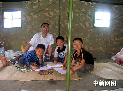 中新網(wǎng)5月12日電 題:他為災(zāi)區(qū)同胞播撒心靈的陽光