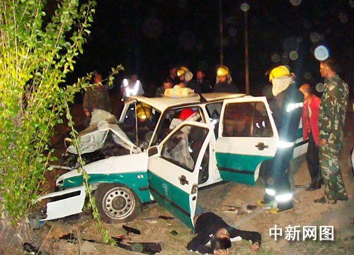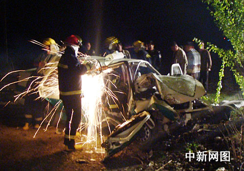 零時(shí)43分,雙鴨山市”119“指揮中心接到報(bào)警稱,雙七公路雙富村路段發(fā)生一起嚴(yán)重的交通事故,車上多人被困請(qǐng)求支援。記者從現(xiàn)場(chǎng)救援的尖山消防中隊(duì)了解到,消防官兵趕到事故現(xiàn)場(chǎng)發(fā)現(xiàn),一輛夏利出租車沖出公路撞到路旁的大樹上,駕駛室嚴(yán)重變形,現(xiàn)場(chǎng)一片狼藉,已有3人被救出送往醫(yī)院,仍有4名人員被卡在車內(nèi)。