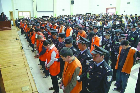 在當(dāng)?shù)剞Z動一時(shí)的白玉崗黑社會性質(zhì)組織犯罪團(tuán)伙,昨天在南陽市中級人民法院受審,27名成員被指控犯有多種罪名。