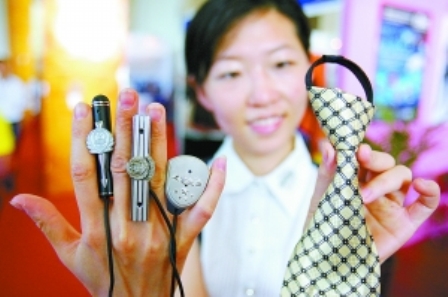 格子領(lǐng)帶、漂亮的徽章、黑色鋼筆帽……參展商頤信科技有限公司的工作人員介紹,任何物體經(jīng)過改裝都能藏進(jìn)針孔攝像頭,作為存儲設(shè)備的主機(jī)與攝像頭分離,只有收音機(jī)大小,約有一袋奶的重量,可以放在兜里,接出來的電線就像隨身聽的電線,既方便又隱蔽。這種警務(wù)隨錄機(jī)又稱現(xiàn)場執(zhí)法取證儀,用于各主要執(zhí)法部門的現(xiàn)場音視頻執(zhí)法取證工作,可以連續(xù)攝錄6個小時。
