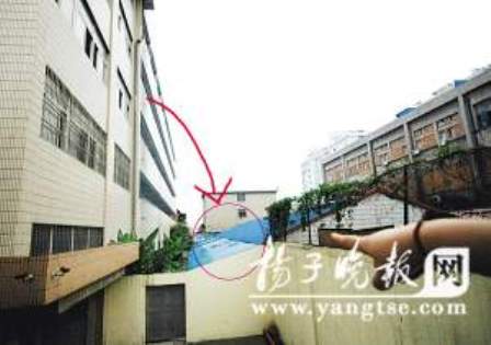 昨天上午9點多,記者接到報料后趕到現(xiàn)場,當時距離該名男生跳樓還不足半小時,受傷男生已被送到南京中大醫(yī)院搶救。據(jù)一位目擊該男生跳樓后情形的學(xué)校負責人介紹,當時他正在二樓辦公室看報紙,只聽見窗外“哐”的一聲響,抬頭一看,竟然看到一名男生砸在附近廠房的彩鋼瓦頂上,將彩鋼瓦頂砸出了一個大窟窿。所幸該男生沒掉到窟窿里去,人還趴在屋頂上,他似乎還有意識,本能地向屋頂上方挪動了幾下身體,這位目擊者還有附近樓上居民看到這情形,還叫那男生“別動別動……馬上叫人來救你!”那男生隨后就抓住了廠房屋頂?shù)囊桓鶛M梁,就沒再動彈了!皬乃菚r候的表情看,肯定摔得不輕,連喊救命的力氣都沒了,當時替他捏了把汗,能保命是關(guān)鍵啊!