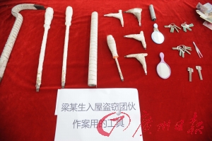 他們的作案和“偵察工具”也不少,比如有特制的小鏡子,就是用來看有無暗鎖,以此判斷有沒有人在家。他們外出作案時(shí)都拎著個(gè)電腦包,其實(shí)包里裝的都是小撬棍、螺絲刀、自制萬能鑰匙等作案工具。