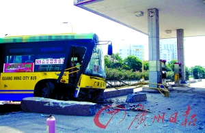 據(jù)加油站的一位員工回憶,事發(fā)時,站內(nèi)正有一輛小車在加油。突然,只聽“轟隆”的幾聲巨響,一輛505路公交車就沖了進(jìn)來,并當(dāng)場撞斷路燈直奔加油站。這時,他的一位正在為小車加油的工友看到被撞斷的燈柱就要砸到自己,嚇得立即丟下加油槍,一個飛身躲到了一旁!靶姨澏汩W及時,否則會被路燈砸傷。”