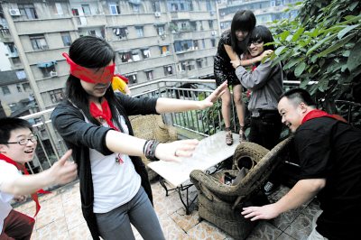 昨天下午三點(diǎn),十八梯,一位穿黑連衣裙的美女站在中間指揮:“我們先去吃飯,待會集合去老街客棧玩捉迷藏,那里有好多玩具!边@人就是活動組織者,上海某廣告公司白領(lǐng)巍薇。巍薇是重慶人,酷愛游玩,每年兒童節(jié)都會和朋友們聚會。她說,本來以為這次活動在重慶組織不起來,沒想到在網(wǎng)上報(bào)名的人有214人,電話報(bào)名的有30多個(gè)。由于改了時(shí)間又趕上下雨,最終只來了十四人。
