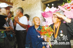 原來,為照顧老人身體,車速行進較慢,回鄉(xiāng)行程被迫拖延了一個小時。從緬甸全程陪同劉老回鄉(xiāng)的華西都市報記者介紹,前日傍晚從昆明飛抵成都后,老人就迫不及待地想連夜回鄉(xiāng),被組織者婉拒后,老人昨晨5時許就醒來,一直在細細整理自己的衣褲和獎章;大家本想在中途午餐,但老人很執(zhí)著:回家的第一頓飯,一定要和家人一起吃。