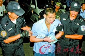 杜秋發(fā):沒有。過去我們從審訊他的同伙中知道成瑞龍雖然六親不認(rèn),但心里還是牽掛自己的兒子的,當(dāng)我們問他有什么要求時,他回答說:“我最關(guān)心我仔,希望能見到他。”我當(dāng)時就說:“等回到佛山,他們會盡量安排你們見面的,而且我們看到你兒子了,長得很高大很帥!彼那榫w很快就恢復(fù)平靜,對殺害佛山民警案件供認(rèn)不諱,后來一路押解回來也很順利。