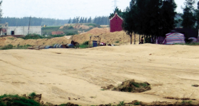 霞坡大村一康姓村民說,早在2006年原村民小組長在任時,曾有外地人提出在該村邊采礦,遭到村民的反對,只采了幾天就停工了。去年,新一屆村干部上任后,有的村干部同意將地租給他人采礦。從今年3月底開始,一些不法人員進入該村離大海約1.5公里處的村邊林地,砍毀了大片茂盛的速生林,架起采礦機械,搭起簡易工棚,大肆抽取沙土里面含有鈦等金屬的黑、黃色礦砂。自此以后,原先保護良好的生態(tài)環(huán)境遭受到了嚴重破壞,大片的沙灘地被挖塌了,村邊林地被挖成大深潭,對孩子們的安全構(gòu)成了很大的威脅。
