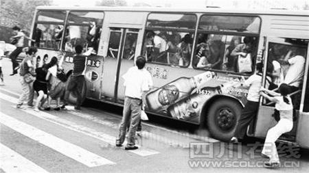 昨日上午8時左右,一輛8路空調(diào)車駛至成都萬年場公交站時,有位女乘客突然尖叫,車上大約60名乘客頓時慌作一團(tuán)。司機(jī)迅速將車?柯愤叢⒋蜷_車門,但仍有乘客打碎玻璃從車窗跳下“逃生”,1分鐘不到所有人全部逃離車廂。事后證明只是虛驚一場,所幸沒有造成人員傷亡。