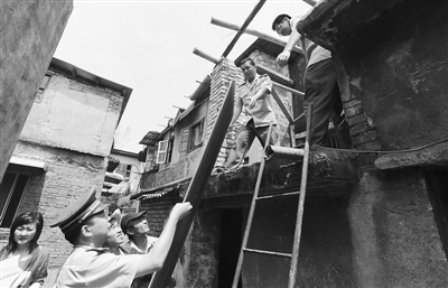 “這處違建不能一拆了之”,楊敏與隊(duì)員們商議,共同捐資2000元,買(mǎi)了磚石砂料。昨日,宗關(guān)街城管執(zhí)法中隊(duì)6名隊(duì)員來(lái)到現(xiàn)場(chǎng),依法拆除違建的亭子間,同時(shí)運(yùn)砂砌磚,改造加固房體,修建隔雨層,不料被街坊鄰居舉報(bào)。