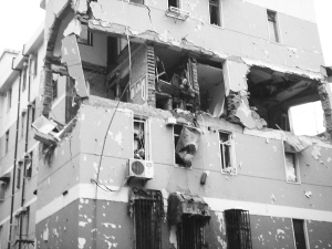 事發(fā)后,樓內(nèi)有居民自行逃出,警方和消防搶險(xiǎn)人員趕到后,從中救出了數(shù)名傷員。爆燃產(chǎn)生的巨大沖擊波,還致使樓房旁一根高約15米的電線桿發(fā)生傾斜。供電部門(mén)為安全起見(jiàn),切斷了整個(gè)小區(qū)的供電。記者在現(xiàn)場(chǎng)看到,一輛電力搶修車(chē)已送來(lái)一根新電線桿,準(zhǔn)備待警方勘查完后施工。