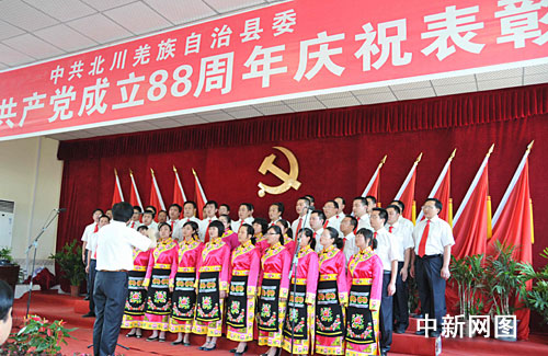 中新網(wǎng)北川6月26日電(王官倫)“沒(méi)有共產(chǎn)黨,就沒(méi)有災(zāi)區(qū)人民的新家園”。26日,為慶祝中國(guó)共產(chǎn)黨建黨八十八周年暨中華人民共和國(guó)成立60周年,中共北川羌族自治縣委舉辦了以“感恩祖國(guó), 感謝山東,歌頌偉大的中國(guó)共產(chǎn)黨”為主題的慶“七一”表彰大會(huì)暨歌詠比賽。