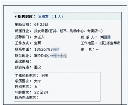 記者注意到,湯云在招聘網(wǎng)上留著的是朋友的名字和自己的號碼,“主要是感覺有點(diǎn)害羞!睖普f。