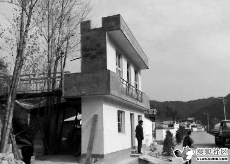 發(fā)帖者稱,“在河南省欒川縣叫河鄉(xiāng),一個(gè)建筑格外顯眼,就在公路旁邊,猛一看是兩層小樓,墻壁還刷得白白的,孰不知這棟樓深度只有1.5米左右,為了配合‘新農(nóng)村建設(shè)’建新房,可農(nóng)民又沒錢蓋‘真樓房’,就只有這樣做了。”