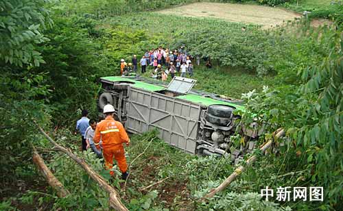事故現(xiàn)場(chǎng),一輛從廣東順德開(kāi)往玉林方向的臥鋪車側(cè)翻在公路路基下,客車擋風(fēng)玻璃嚴(yán)重破損,左側(cè)車箱變形,F(xiàn)場(chǎng)指揮員根據(jù)情況,迅速協(xié)調(diào)交警封閉事故現(xiàn)場(chǎng),設(shè)立警戒區(qū),疏散交通。消防救援人員分成兩組,一組協(xié)助急救中心人員搬運(yùn)傷者,另一組人破拆車門和車窗進(jìn)入車內(nèi)救援。部分輕傷乘客在消防官兵引導(dǎo)下自行走出,消防官兵隨后深入車廂內(nèi)部,在車廂后半部找到被行李壓住的5名傷者。消防官兵搬開(kāi)壓于被困者身上的物品,并成功疏散出車體移交醫(yī)護(hù)人員處理。