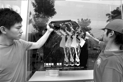 昨天中午,10余名邁克爾·杰克遜的歌迷聚集在望京利澤中一路1號(hào)的一家酸辣粉餐廳門(mén)前,要求店方撕掉店外印有杰克遜人像的消費(fèi)券宣傳頁(yè),禁止售賣(mài)此類消費(fèi)券。最終店主撕下宣傳頁(yè),并答應(yīng)不再使用此類消費(fèi)券后,歌迷才離開(kāi)。