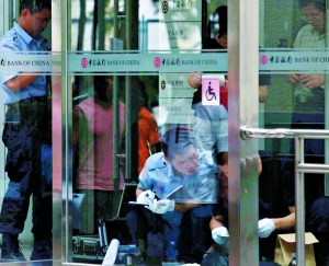 事發(fā)中國銀行位于北科大籃球場西側(cè),高兩層,分為對私業(yè)務(wù)區(qū)和基金業(yè)務(wù)區(qū)。昨日中午12時(shí)10分許,顧客王明(化名)進(jìn)入該行準(zhǔn)備提款!叭抛簧献奈鍌(gè)顧客,兩個(gè)開放的銀行窗口前各有人在辦業(yè)務(wù)!蓖趺髡f。