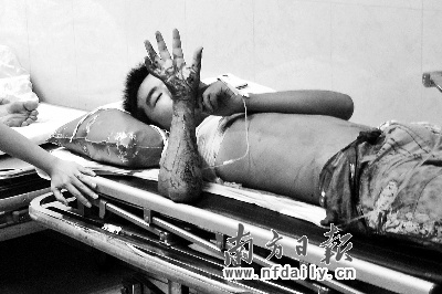 25歲劉文定剛從公共廁所出來即被砍,“砍了我就往前面跑了,我腰部出血,跑到協(xié)管員面前問去醫(yī)院的路,沒想到他說他也被砍傷了”。到醫(yī)院后,從背后流下的血染紅了劉文定上衣和短褲,“他肯定是瘋了,揮著刀一路跑著亂砍,路上的人都忙著躲!