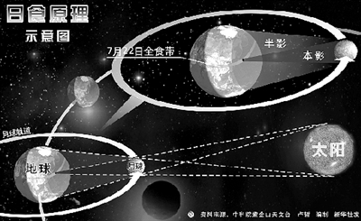 22日我國將出現(xiàn)500年一遇的大日食奇觀。整條日全食帶將首先從不丹國西邊進入我國西藏南部和云南西北部,隨后掃向四川和重慶,接著進入湖北和安徽;再向東掃向江蘇和上海,最后將從浙江的舟山群島入海而東去。被日全食帶掃過的地方都能目睹到日全食盛景。這次日食是從1814年至2309年在中國境內(nèi)全食持續(xù)時間最長的一次日全食,最長可超過6分鐘。