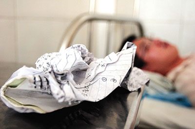 在謝崗人民醫(yī)院四樓住院部,記者見到,江赟的上衣被完全撕破,全身沾滿了淤泥。眼角紅腫,其腦部、頸部、腿部等多處有明顯抓傷痕跡。而南方都市報記者莫曉東,大腿青腫,頸部、全身等也有明顯被抓傷痕跡。據兩人的病歷顯示:江赟,左眼骨脹腫、左頸部抓傷、全身多處軟組織損傷。莫曉東,左耳后腫脹、多處皮膚破損、右大腿腫脹。主治醫(yī)生表示,兩人全身多處受傷,特別是本報見習記者江赟,在今年5月剛做完左聽小骨手術,而在昨天又被人重擊頭部,需要做進一步觀察治療。 (記者唐波、易建成)