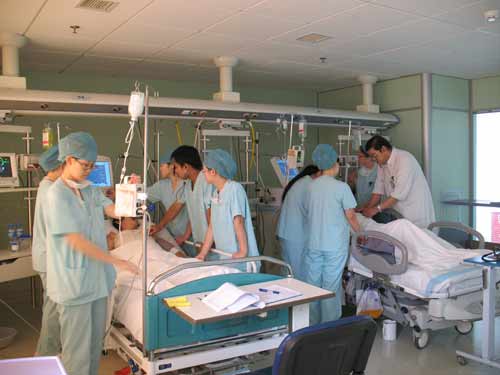 由于當時沒有合適的航班,在聯(lián)系到了北京急救中心的兩輛急救車后便立即奔赴內(nèi)蒙古。錫林浩特距北京約650公里,但想到傷者病情危重,醫(yī)護人員們不顧個人安危僅用5個多小時便趕往了當?shù)氐尼t(yī)院。這時的時間是已是7月26日晚8時。醫(yī)護人員們?nèi)徊活櫬吠緞诶,全身心地投入到了救治傷員的工作中去。經(jīng)過快速細致的檢查,醫(yī)護人員首先給幾名危重傷員進行手術(shù)治療,術(shù)后傷者傷情得到明顯改善。由于當?shù)蒯t(yī)院條件有限,在醫(yī)護設(shè)備無法滿足的情況下,有兩名重傷者必須盡快轉(zhuǎn)送到北京繼續(xù)治療,醫(yī)護人員們在安排好了當?shù)蒯t(yī)院的相關(guān)救治工作后,于7月26日凌晨護送2名傷員返京。