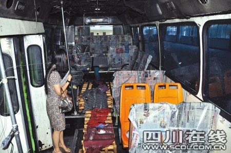 試驗(yàn)開(kāi)始前,記者在試驗(yàn)現(xiàn)場(chǎng)打探了一番:試驗(yàn)車是一輛綠色的CFC6110D型公交車,正是與成都“6·5”公交燃燒事件同類又同色的車型。車廂頂棚夾層內(nèi),記者看到安置了一根管道,管道上有幾個(gè)噴霧龍頭狀的裝置,過(guò)道地上特別放置了一些木柴垛和衣物。特別的是,在左側(cè)倒數(shù)第二排的座位,即縱火嫌疑人事發(fā)時(shí)所坐的位置,試驗(yàn)人員放置了試驗(yàn)用的唯一動(dòng)物活體——一只后腿捆綁、放在長(zhǎng)方形紙盒里的兔子,車廂內(nèi)均勻地傾倒了汽油。在汽車的頭尾部,數(shù)十根控制、驅(qū)動(dòng)線連接到控制臺(tái)處,一場(chǎng)完全按“6·5”公交燃燒事件9路公交車事發(fā)場(chǎng)景的試驗(yàn)即將開(kāi)始。