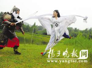 “江湖笑恩怨了,人過招心不老……”4日下午2點(diǎn),南京江寧區(qū)南山湖景區(qū)儼然成了古裝戲的外景地,3對年輕男女在此像模像樣地演繹個(gè)性“私人電影劇照”,——將《神話》、《神雕俠侶》、《十面埋伏》等古裝武俠電影中的經(jīng)典場景翻版演繹,用他們的話說,著實(shí)圓了一回都市人的“成人童話夢”。