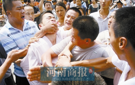 這時又沖來一中年男子,與執(zhí)法隊員撕扯起來,場面一片混亂。一攤販告訴記者,這人是朱林的丈夫,姓許,信陽固始人,兄妹八人都在附近做生意。這一帶賣水果的都是信陽老鄉(xiāng),來鄭做生意已有十多年。