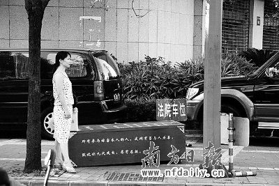 昨日上午8時許,該離婚訴訟案還沒開審,當事人李女士已將棺材運至法院門口。記者趕赴現(xiàn)場時見棺材已被法警抬走,放置在一輛囚車里。在囚車旁,記者看到棺材上寫著:“今日殘民告官,以死抗婚,禪城區(qū)某法官剝奪本人權利,操縱本人婚姻,捏造案件,欺壓婦幼……”被詛咒的法官表示,他只是按照法律程序辦事,并未“剝奪”李女士的權利。
