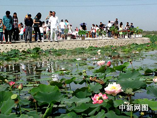 記者24日在青格達(dá)湖濕地看到,這里500畝荷花競(jìng)相盛開,蔚藍(lán)的17平方公里湖面上多種鳥類翩翩起舞,形成了一幅西域江南水鄉(xiāng)景致,吸引各地游前來客賞花觀鳥。