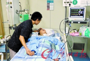 王素容的主治醫(yī)生徐醫(yī)生告訴記者,王素容因?yàn)橹匦惋B腦損傷,已經(jīng)是植物人狀態(tài),什么知覺都沒有了,要想她蘇醒只能等奇跡。曾紹勇仍然在等待這個奇跡。
