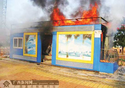 9月1日下午,欽州市二橋頭旁一間環(huán)保公廁因地下管道燃?xì)庑孤┮l(fā)大火,兩名正在如廁的市民被燒傷,相關(guān)部門緊急處置兩小時,將險情排除。