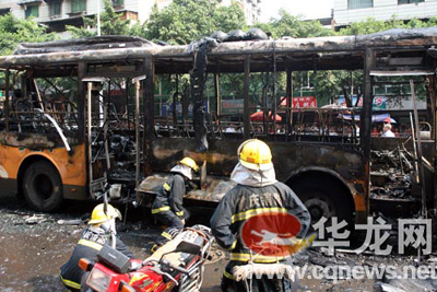 15:40分,華龍網(wǎng)記者趕到事發(fā)現(xiàn)場,看到車輛已經(jīng)被燒的面目全非。警方已經(jīng)在現(xiàn)場拉起警戒線,開始調(diào)查和清理現(xiàn)場。據(jù)目擊者稱,起火點(diǎn)是車子的中后部,短短3、4分鐘時間,公交車玻璃發(fā)生爆炸,大火就將整輛公交車包圍。事發(fā)后,司機(jī)打開車門,乘客逃出。據(jù)重慶商報報道,有3名乘客受傷。