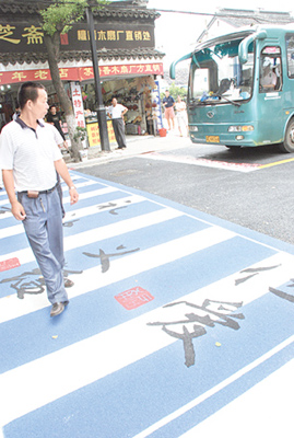 一些市民也認(rèn)為,“文化斑馬線”上的書法和印章完全是多余的,“新型斑馬線太花哨,要是司機(jī)只顧低頭看字,出了事故,誰來承擔(dān)責(zé)任?”他們認(rèn)為,畢竟斑馬線首先要承載的是安全,而非文化,在斑馬線兩旁或者路牌上體現(xiàn)書法作品和文化內(nèi)涵也許更好。(本報(bào)記者 蔣德)