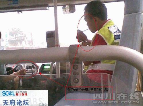 7日,網(wǎng)友“飛過海里”在天府論壇發(fā)帖稱,當(dāng)日早上,他乘坐車牌號(hào)為川A90107的72路公交車去上班,剛上車,就發(fā)現(xiàn)駕駛員和安全員一邊聊天,一邊開車。在他快下車時(shí),司機(jī)居然摸出兩支煙,自己拿一支,給公交安全員一支,并隨后點(diǎn)燃了煙。此時(shí)車上還有乘客,兩人就抽起了煙。