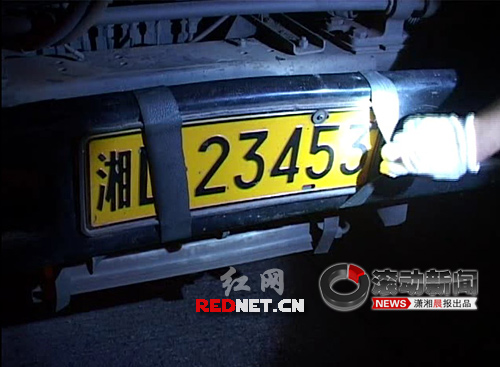 隨后,民警又?jǐn)r下一輛大貨車。這輛車不僅車尾沒有懸掛號(hào)牌,前面也做了手腳。司機(jī)用兩副皮筋遮住了前牌照,遮住了末尾一個(gè)數(shù)字,還在歸屬地來了個(gè)“貍貓換太子”,湘D變成了湘L!