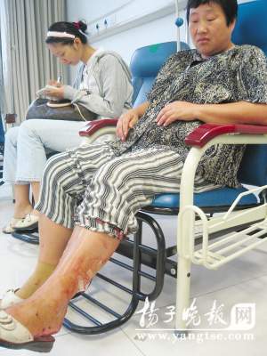 記者在醫(yī)院看到,周大媽左腳上被狗咬出了兩個(gè)深深的洞,左腿小腿肚子上也是鮮血淋漓,被醫(yī)用紗布包扎著,“腿肚子縫了三針。”周大媽的老伴告訴記者,他們到醫(yī)院后已經(jīng)交了兩千塊錢醫(yī)藥費(fèi)了,民警讓他們先看病,費(fèi)用肯定是要跟狗主人算的。他還告訴記者,周大媽是一名腫瘤患者,平時(shí)身體就不好,這次被狗咬傷了,又是掛水又是打疫苗,還不知道對(duì)腫瘤的治療有沒有影響。