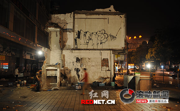 這位工作人員說,南門口緊臨黃興南路商業(yè)步行街,人流量和車流量都相當大,直到晚上12點還很熱鬧。被拆遷的這棟房屋就在路邊,如果白天拆除,對行人和車輛恐怕都不太安全。
