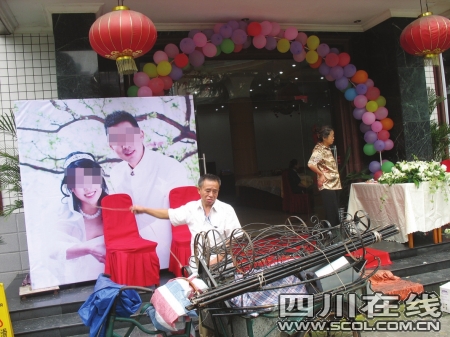 曾先生和李小姐決定結(jié)束他們幾年來(lái)的愛(ài)情長(zhǎng)跑,昨日在新南門(mén)某酒店擺設(shè)婚宴。昨日上午,客人絡(luò)繹不絕地趕到酒店,一共坐了20多桌。